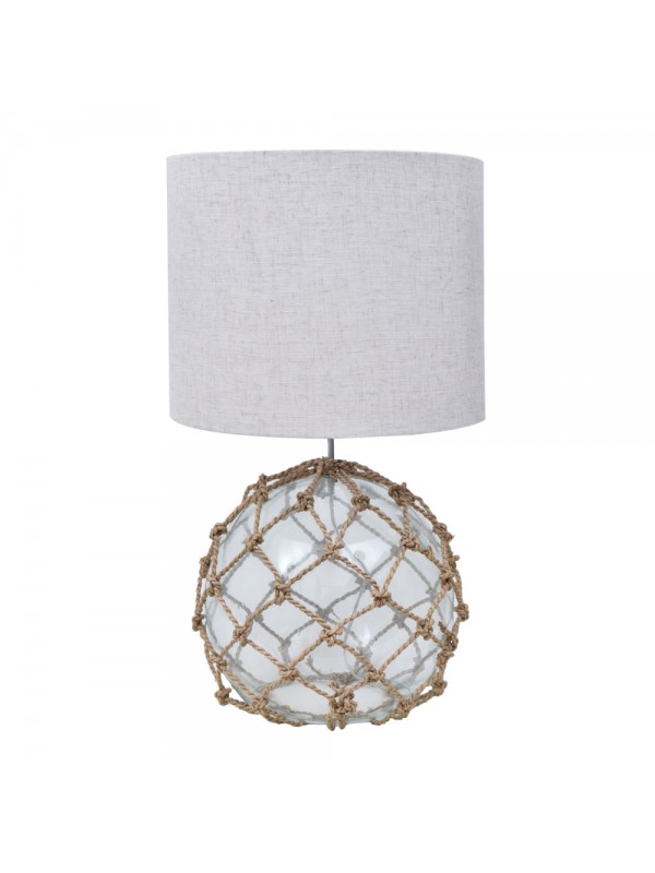 Abajour com base de bola de vidro revestido com corda de fibra natural. Acompanha fiação.