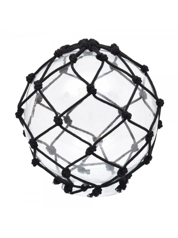 Bola de vidro, revestida com macrame de algodao.
