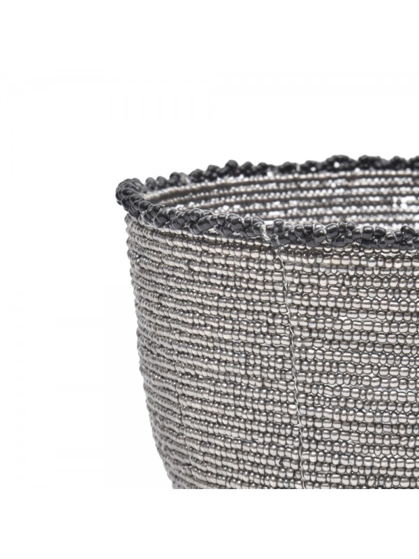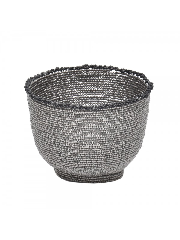 Bowl inteiro de miçangas, com trançado em outra cor.