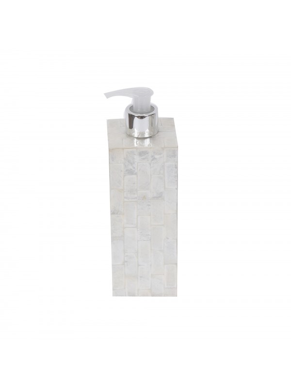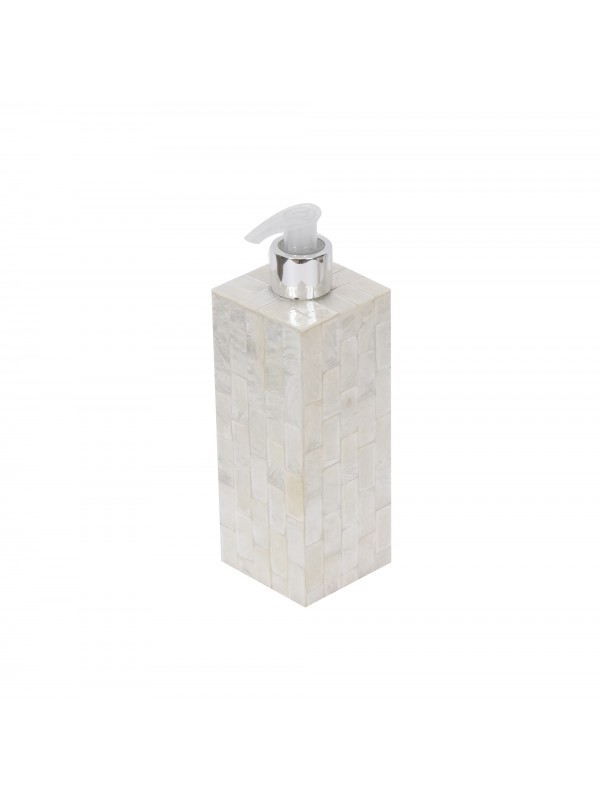 Saboneteira de fibra de plastico revestida com madre perola e coberta com resina, bico prateado.
