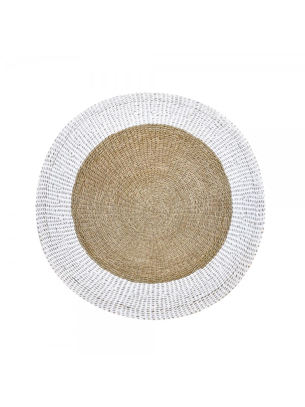 Tapete todo trançado em fibra natural e sintetica. Para area interna.