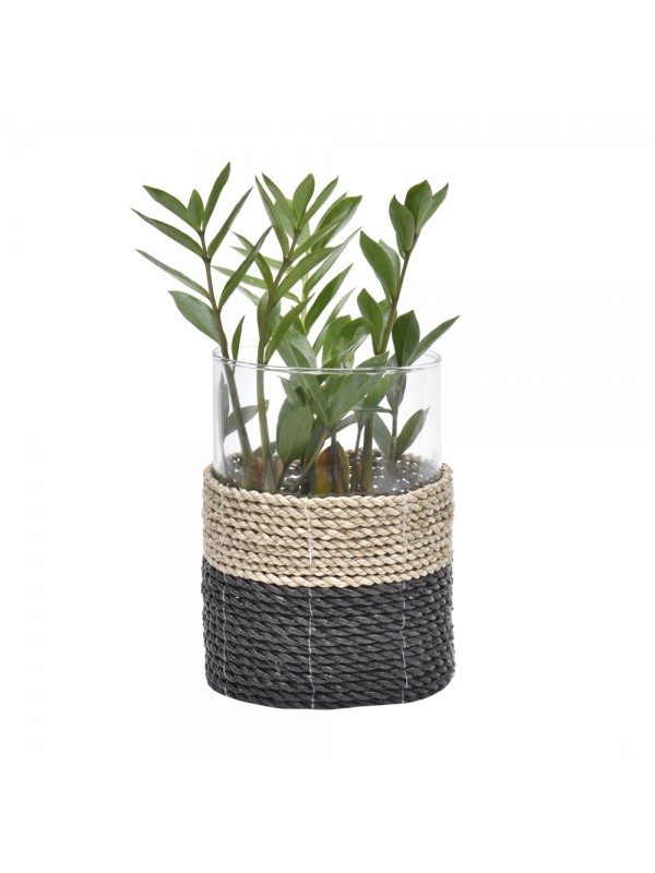 Cachepot de Fibra Natural e fibra sintética. Acompanha Vidro.