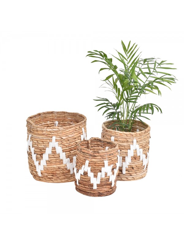 Cesto de fibra sintética em duas cores, acabamento final em bamboo e alças em corda. Dimensões: 20x40x30 Código 548GBRBG..