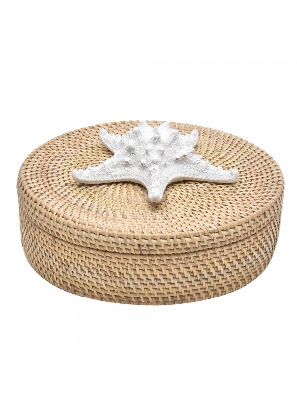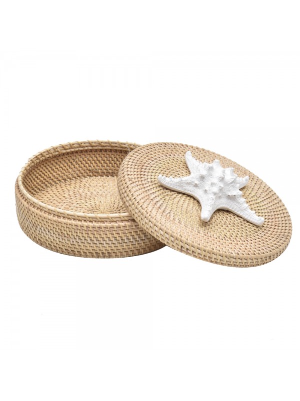 Caixa de ratan com tampa, aplicação de estrela de resina na tampa.