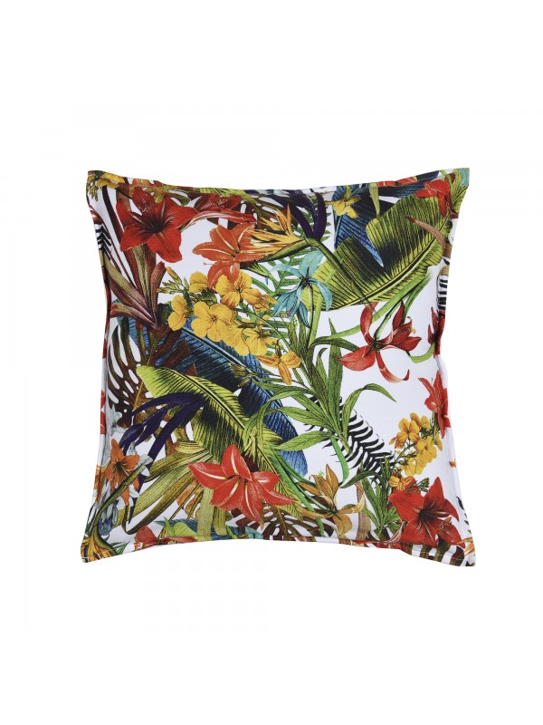 Capa de almofada com zíper em viscose e oxford. Um face estampada e uma face lisa. Enchimento não acompanha.