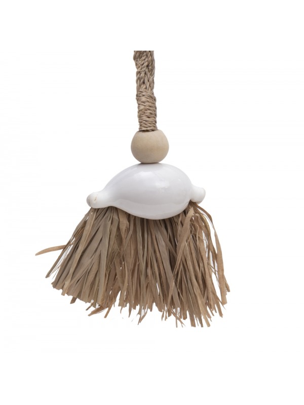 Colar em fibra natural, com aplicação de concha natural.