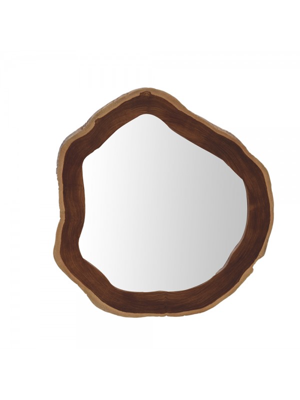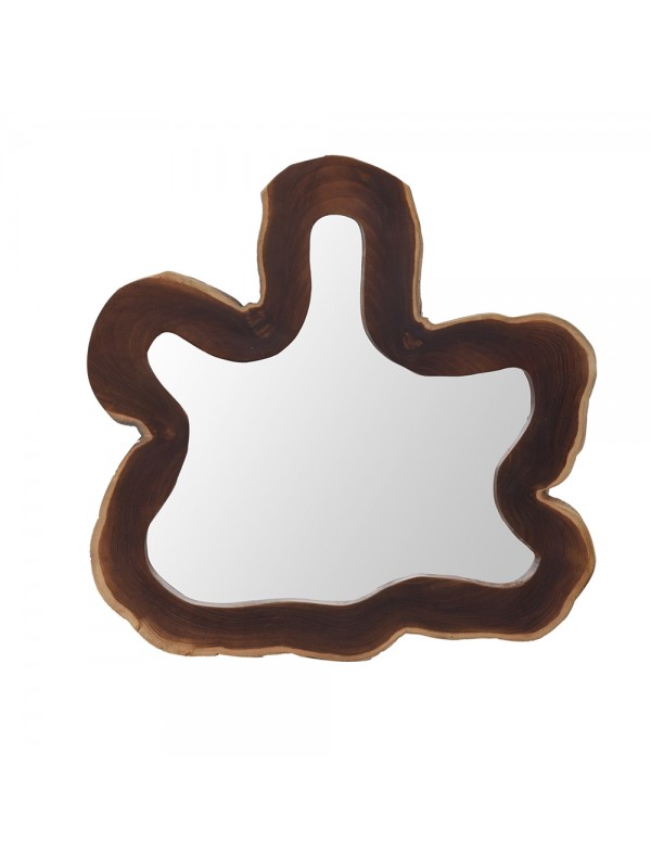 Espelho com moldura de madeira teka em formato orgânico. Suas medidas e formas podem variar.