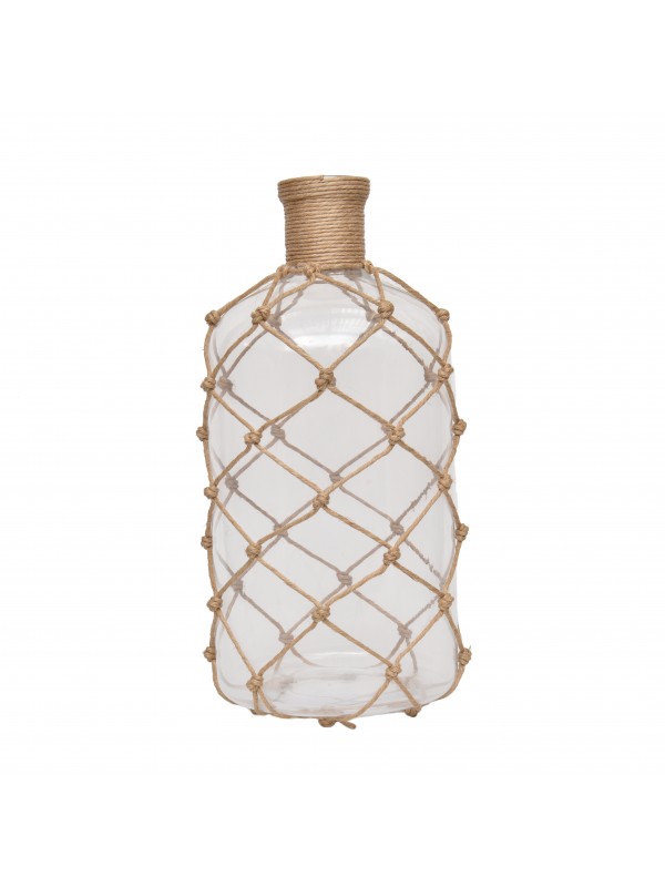 Garrafa de Vidro Revestido em Macramê de Fio de Ráfia Natural.