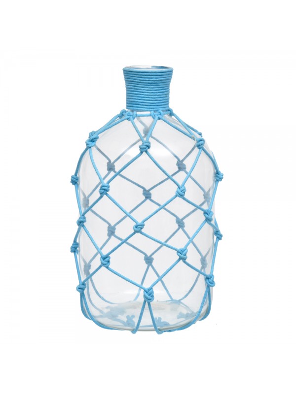 Garrafa de Vidro Revestido em Macramê de Fio de Algodão.