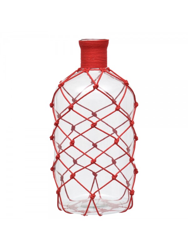 Garrafa de Vidro Revestido em Macramê de Fio de Algodão.