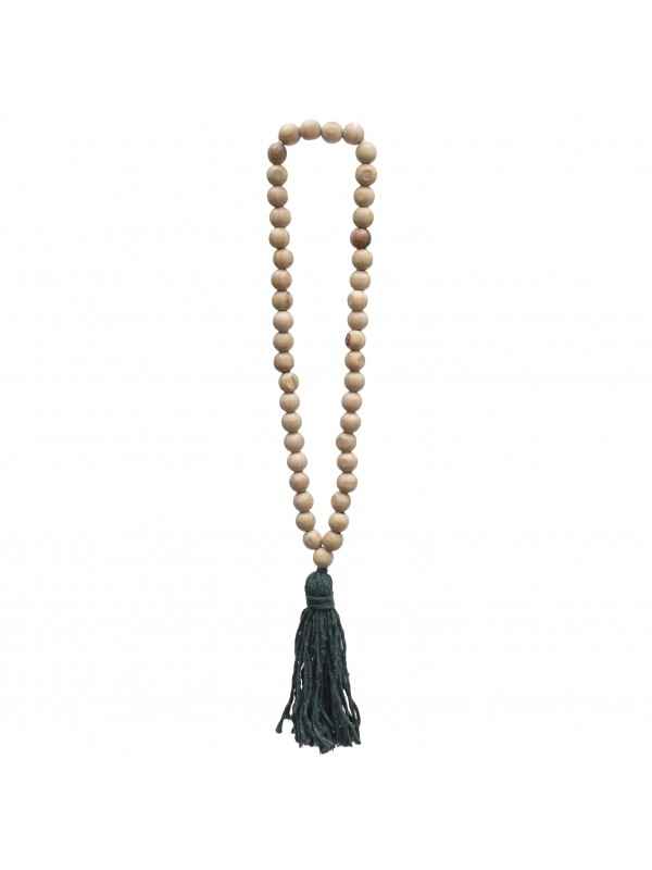 Colar de bolas em madeira e tassel de algodão.