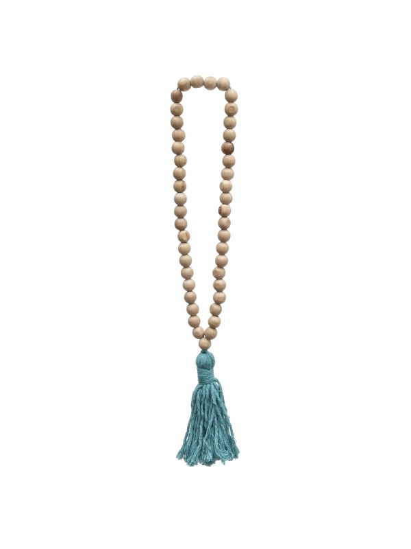 Colar de bolas em madeira e tassel de algodão.