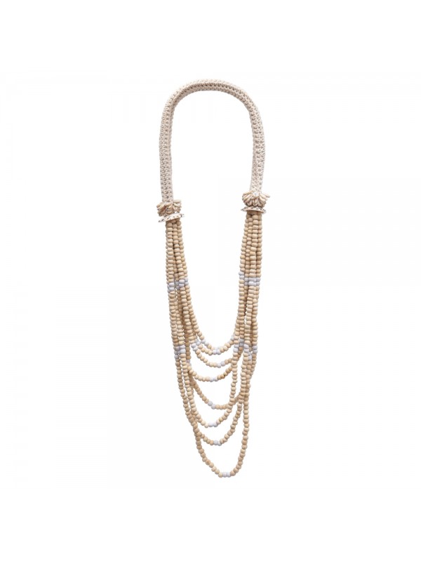 Colar de mesa, feito de conchas naturais costuradas em crochê.