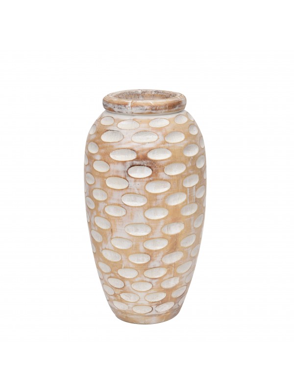 Vaso de madeira, pintura estilo patina. Talhado.