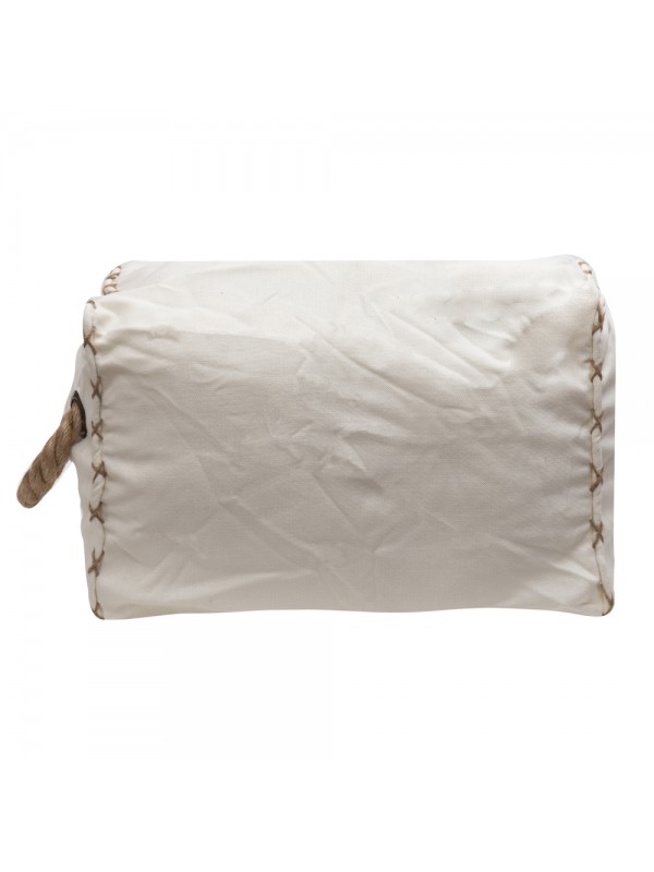 Puff em linho, com detalhe em corda em uma das laterais. Ziper na parte inferior. Recheio em espuma.