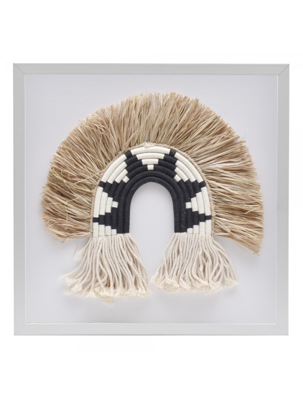 Cesto de fibra sintética em duas cores, acabamento final em bamboo e alças em corda. Dimensões: 20x40x30 Código 548GBRBG..