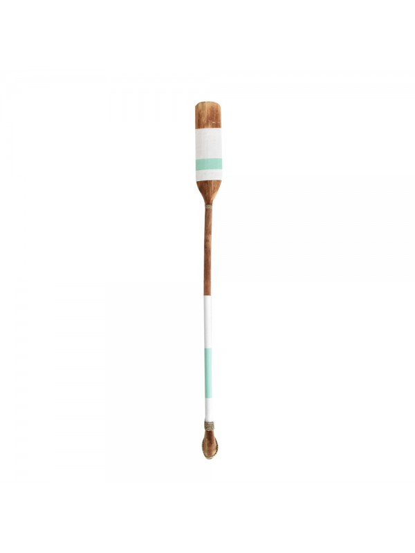 Remo de madeira, com detalhe em fibra natural.